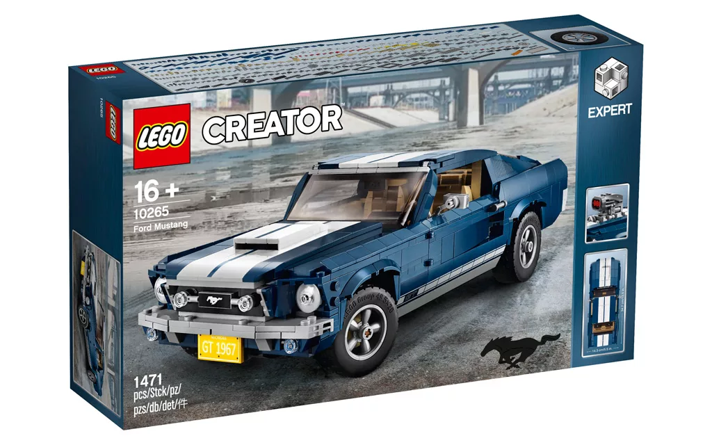 Negli ultimi anni il tema Creator Expert della LEGO si è ampliato con veicoli di grandi dimensioni migliorandoli sempre più. Il set LEGO Ford Mustang (10265) segue questa nuova tendenza poiché questa fantastica icona automobilistica americana degli anni ’60 risulta molto ben realizzata. Questo modello raffigura la classica Ford Mustang GT Fastback del 1967, che è probabilmente tra le auto più belle mai progettate. Il set costa 129.00 euro (oggi, anno 2022, lo trovate sul sito delle LEGO a 169,99 euro). Il Set LEGO Ford Mustang misura 10 cm di altezza, 34 cm di lunghezza e 14 cm di larghezza.